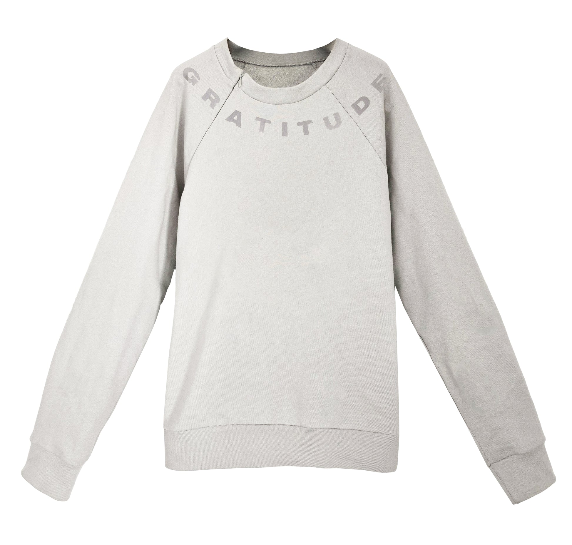 '360 GRATITUDE' Organic Cotton Sweatshirt with optional concealed zipper for port access
